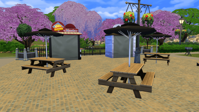 - 🍔 Food & Picnic Area: A social favorite, the food court features shaded tables, BBQ grills, and a selection of grab-and-go stalls (or your own food carts if you’re into gameplay tweaks!). Whether it’s a laid-back brunch or a full family picnic, it’s a perfect spot to refuel and relax.