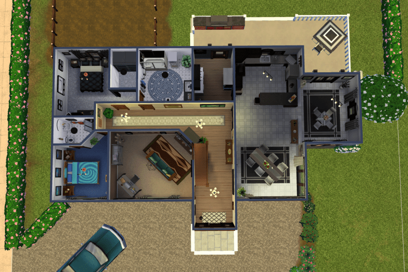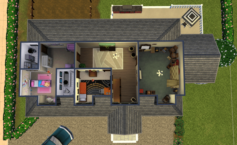 - A long, paved driveway means you’ve got room for all your Sims’ vehicles — from compact cars to delivery vans filled with your next build’s furnishings.