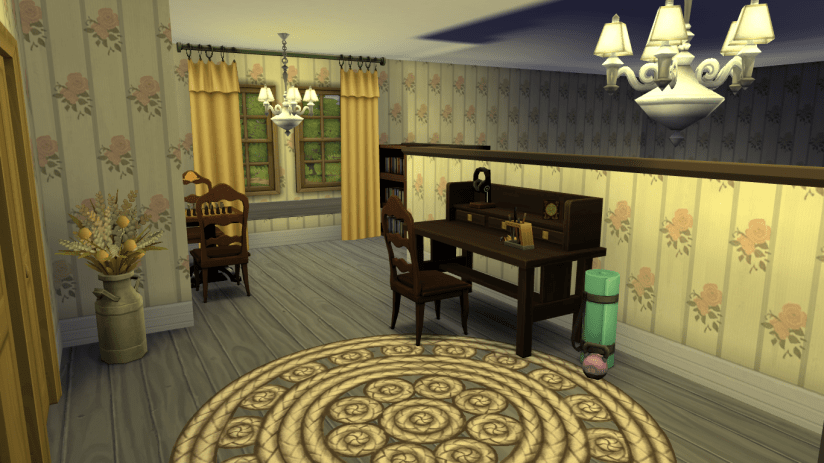 Beyond the main living area, a peaceful study nook offers the ideal work-from-home setup or a quiet corner for journaling and focus. And just when you think it couldn’t get more idyllic, the backyard invites you into your own personal escape — a romantic gazebo surrounded by greenery, paired with a petite garden patch just waiting for your Sim’s green thumb to shine.