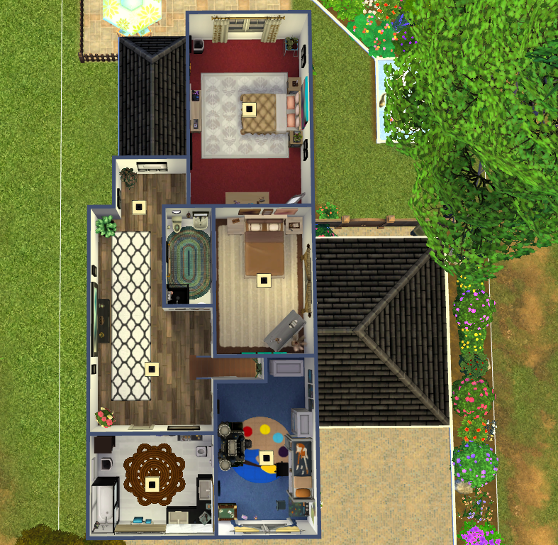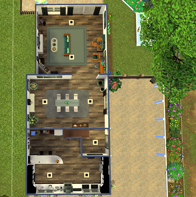 - Covered driveway: Your Sim’s car stays clean and dry, and the drive adds lovely curb appeal.