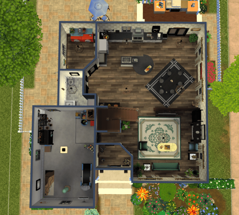 - Stylish Kitchen: Equipped with modern appliances, generous countertops, and sleek cabinetry, this kitchen is a dream for Sims who love to cook or entertain. There’s room to prep, store, and serve — with easy access to the dining area for seamless mealtimes.