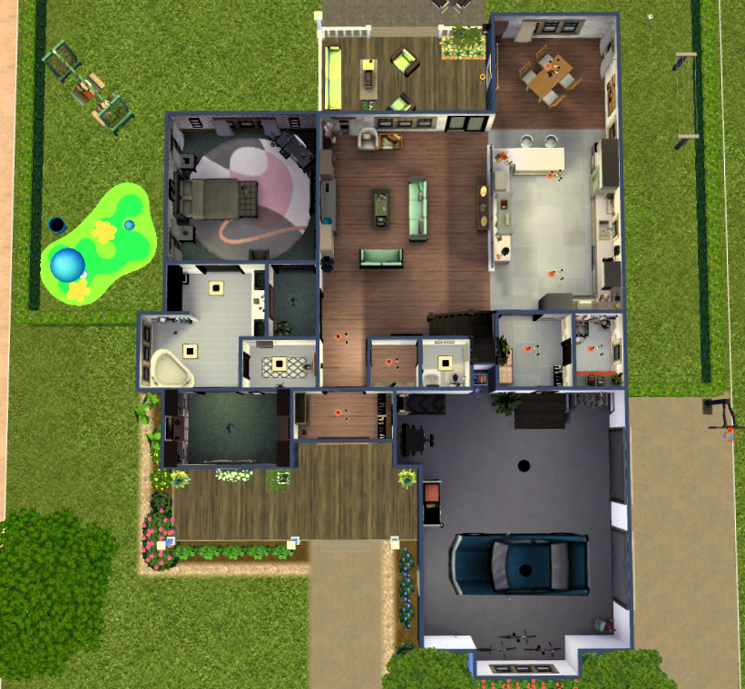 - Massive garage: Need space for your Sim’s car, woodworking bench, or just a ton of seasonal decorations? The attached garage delivers.