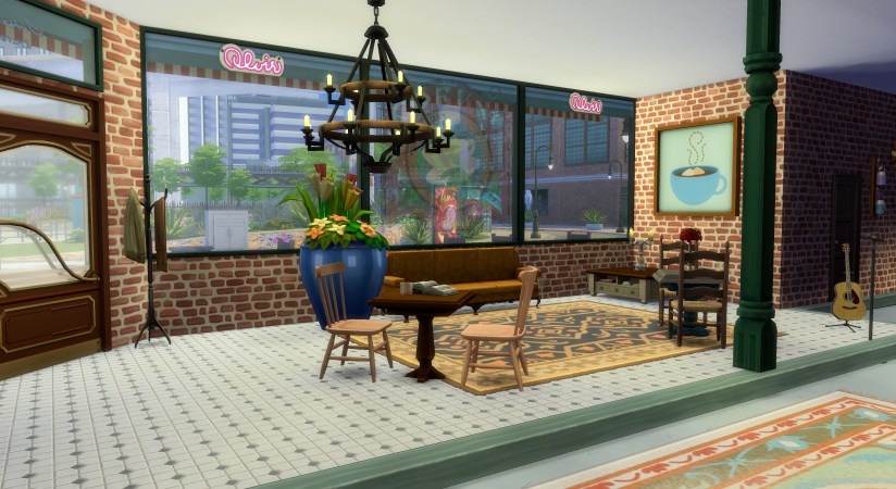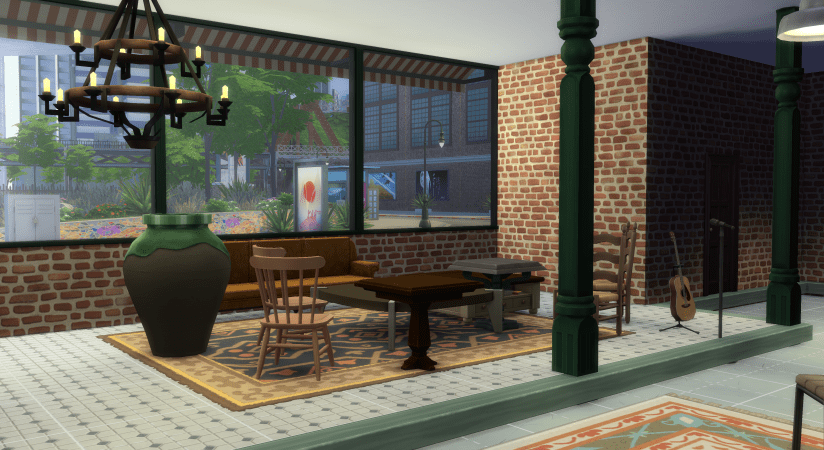 - Cozy Café Setup: Fully functional café lot type with barista station, pastry display, indoor seating galore, and an intimate little stage for those soulful acoustic nights.