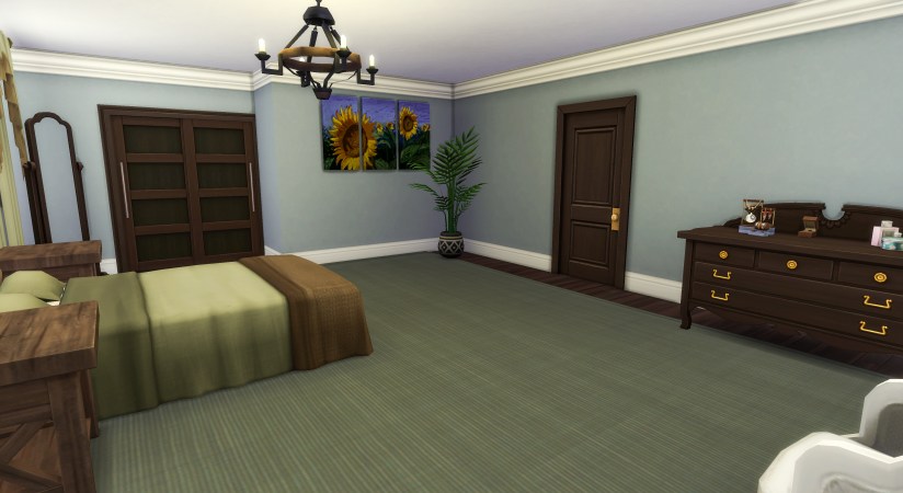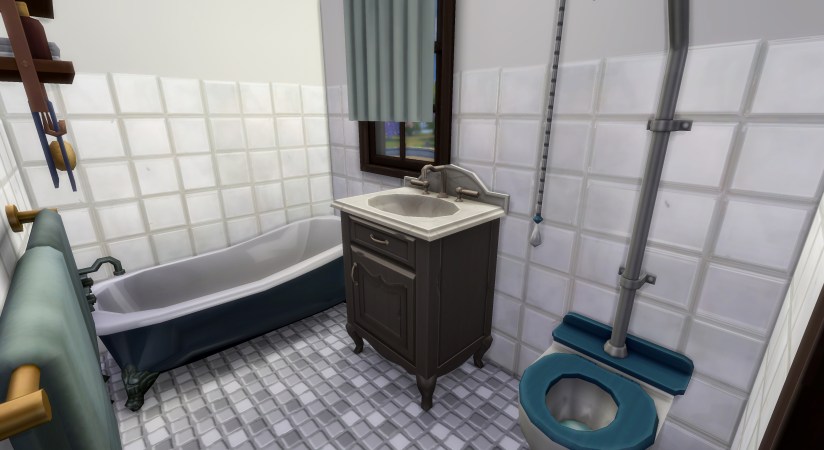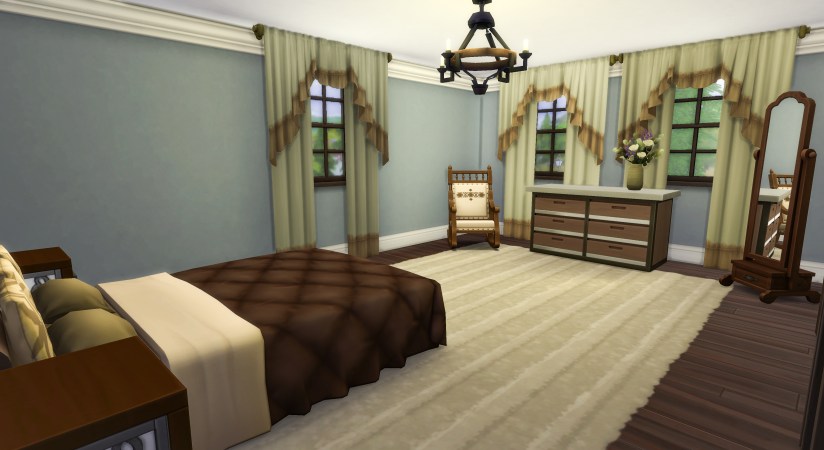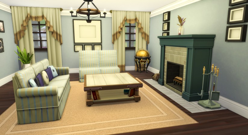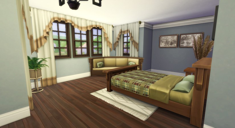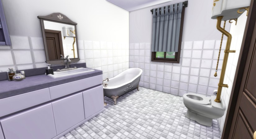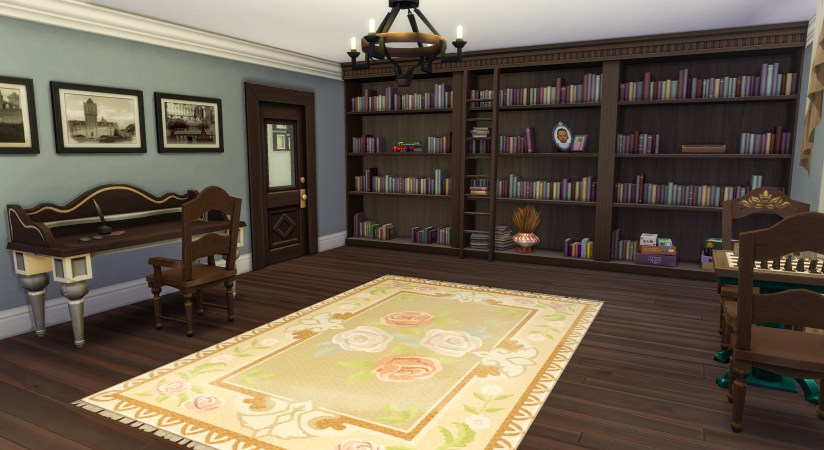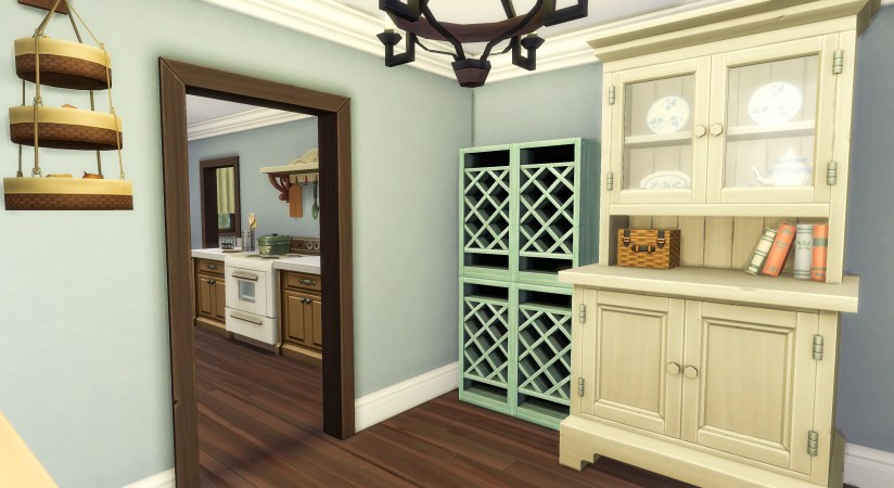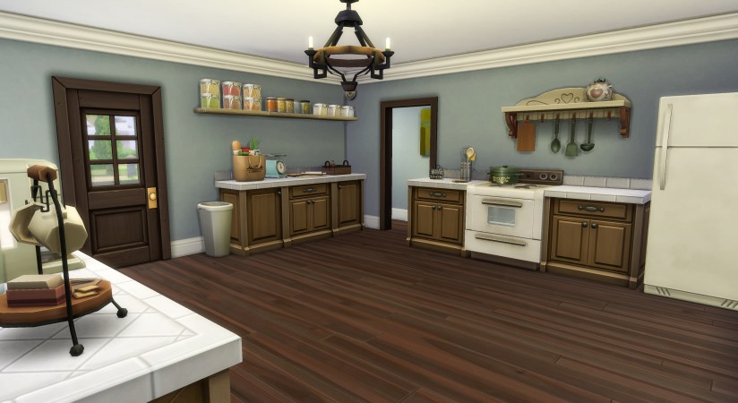 The heart of the home lies in the classic kitchen, complete with a cozy pantry nook for all your Sim’s culinary supplies — from Grandma’s jam jars to freshly baked bread. A dedicated office offers a quiet place for remote work, homework, or novel-writing inspiration while gazing out at the river.