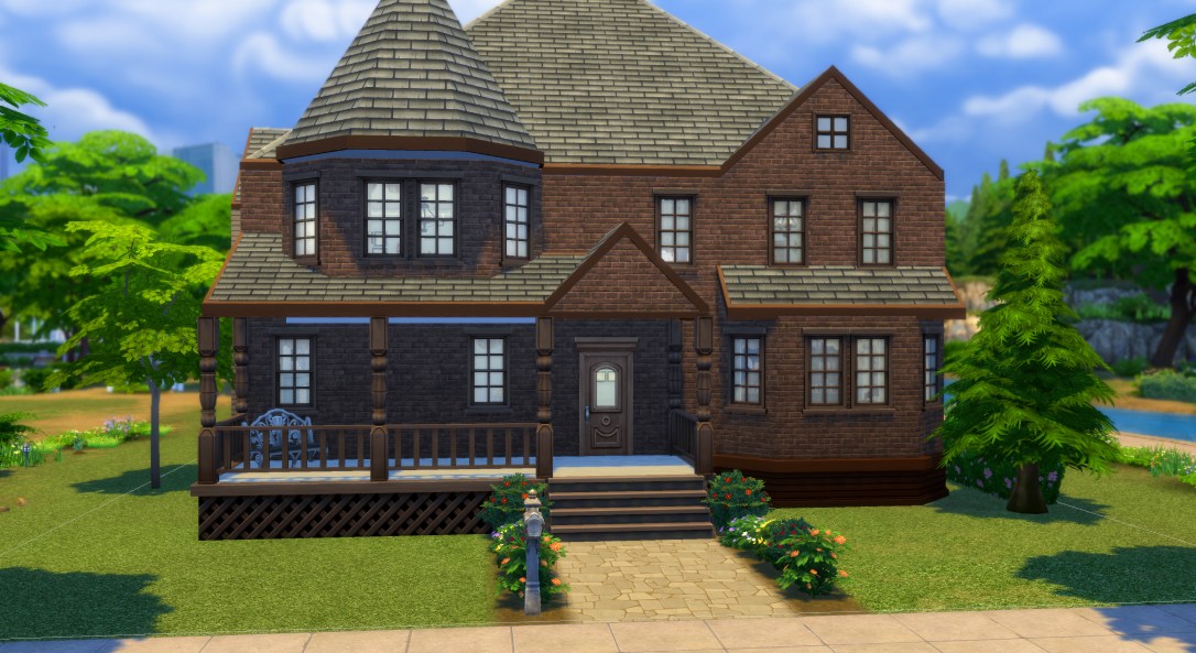 - Elegant brick façade with turret: The unique turret gives this home a fairytale silhouette, perfect for Sims who love a bit of classic charm.