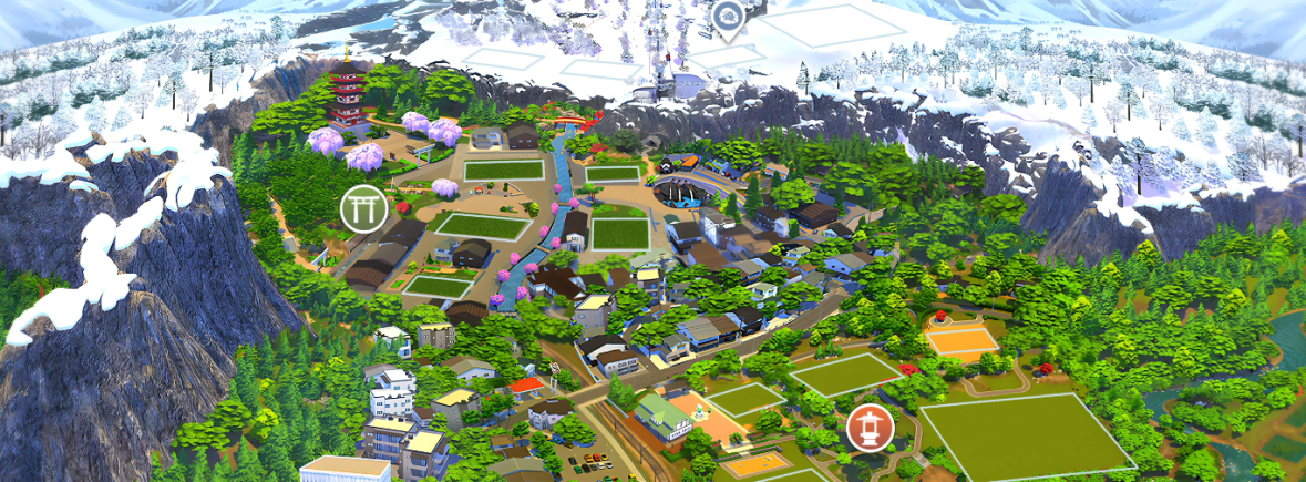 Locals have enjoyed the healing hot springs of Mt. Komorebi for centuries. Now, thanks to the modern snow sports resort in Yukimatsu, everyone else can, too! The region has become a hotspot for tourists looking for a vacation that’s equal parts relaxing and adventurous. With so many new visitors, there have been a lot of changes to the rolling forests that surround Mt. Komorebi. Hopefully, the area will be able to maintain the charm that drew so many Sims to it in the first place.